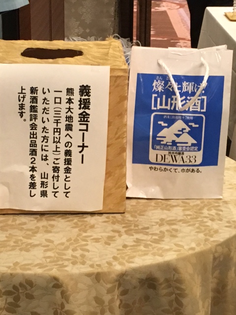 会場入口には熊本大地震のお見舞いの義援金箱が用意され