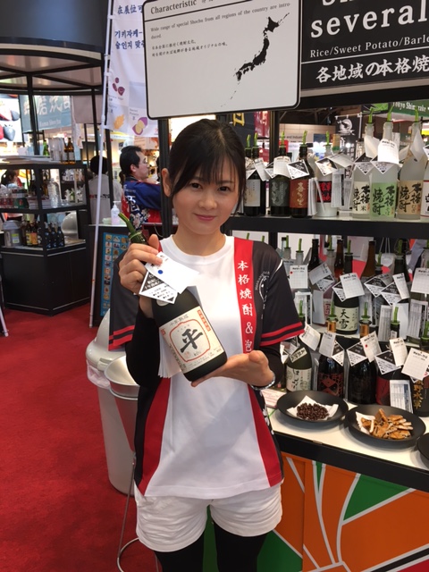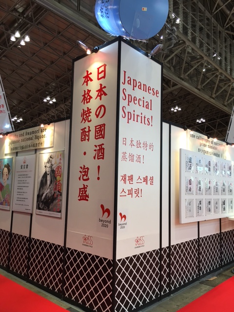 の展示場所に「粕取り本格焼酎たるへい25度、15年熟成」を出品して